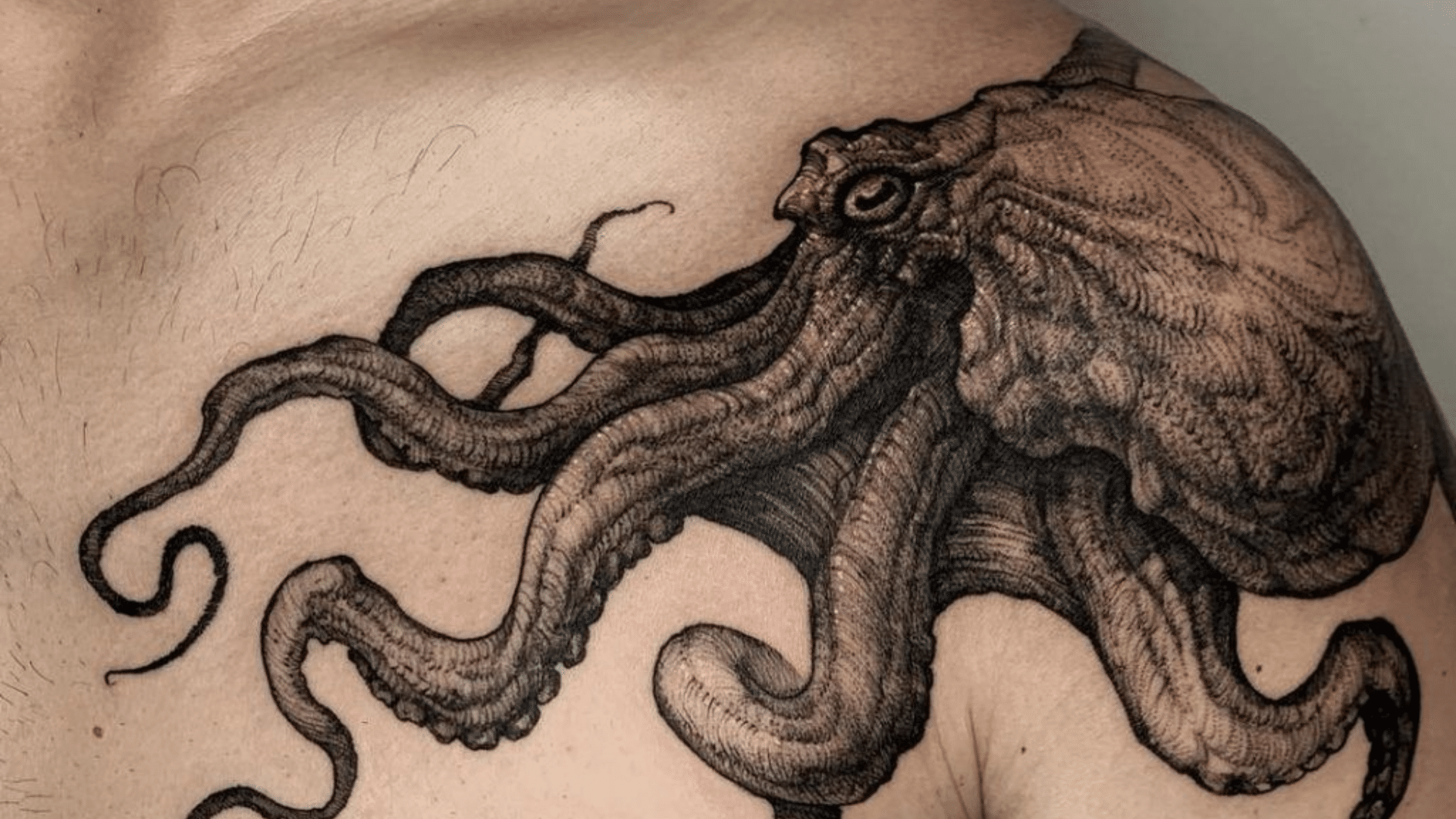 Realistic tattoos use deep shading and tiny lines to build that kind of feel. The focus here is on texture and depth, which gives the Kraken a shape that looks almost real.